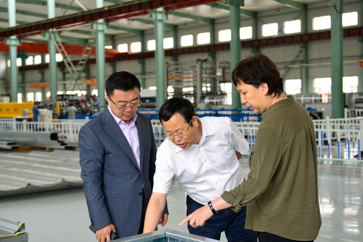 在公司總經理洪長禧、副總經理吳龍的陪同下調研組一行參觀了公司生產車間、裝備及樣品展廳,各位領導對我公司的產品和綜合實力給予很高的評價。座談會上,調研組一行重點聽取了我公司對《遼寧省“十四五”城鎮化與城市發展科技創新規劃》(初稿)中相關規劃的建議,就規劃中的具體重點保障措施展開深入交流。