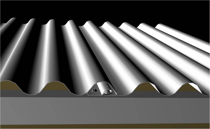 SX-310及SX-780 波紋板通過鍍鋅矩形管龍骨及專用連接角件固定于墻梁外側,連接角件與龍骨之間采用自攻釘固定。