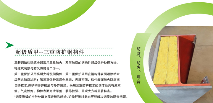 • 三新——綠色建筑領航者。新技術,新工藝,新材料,時尚,環保,快捷